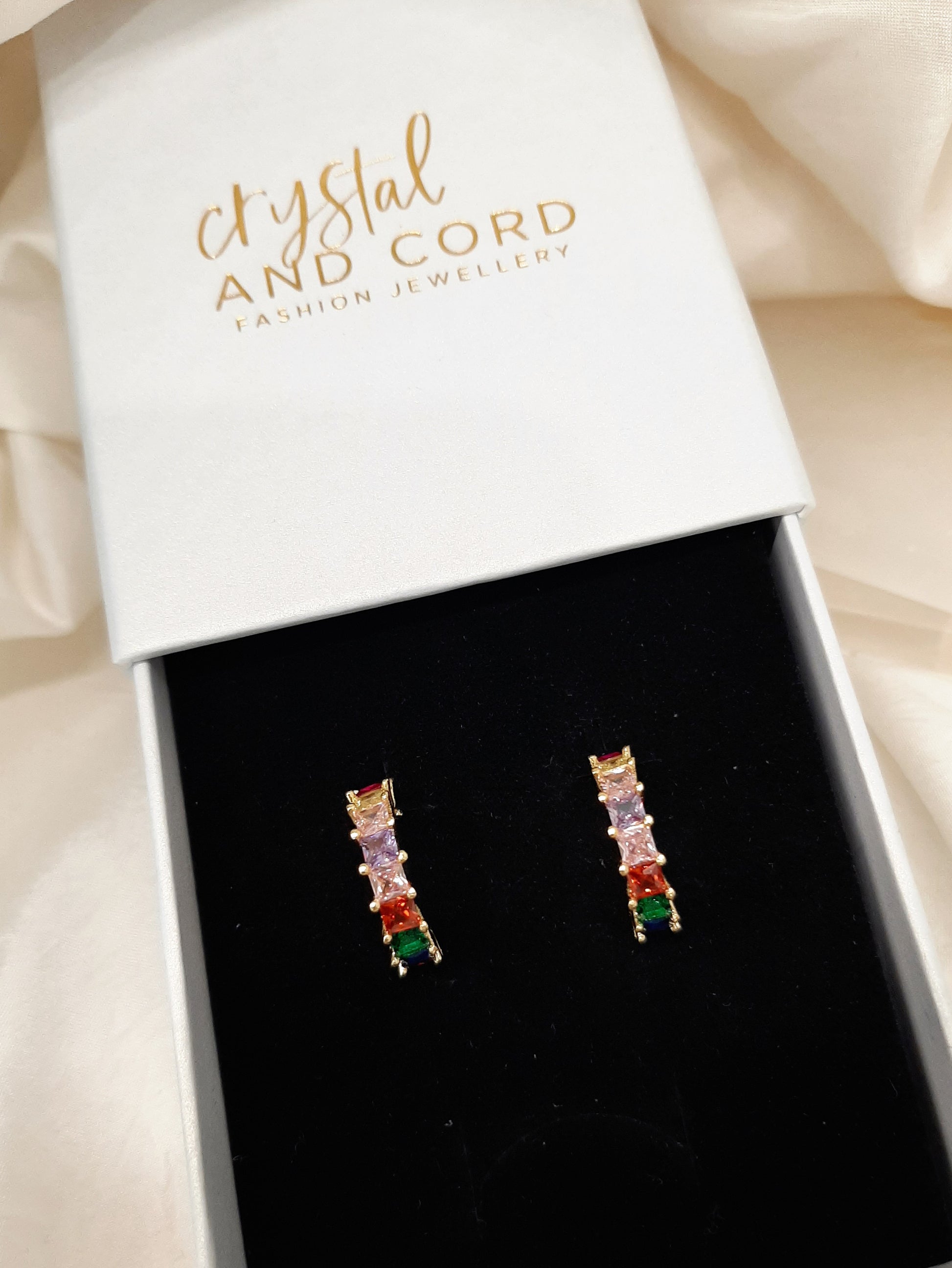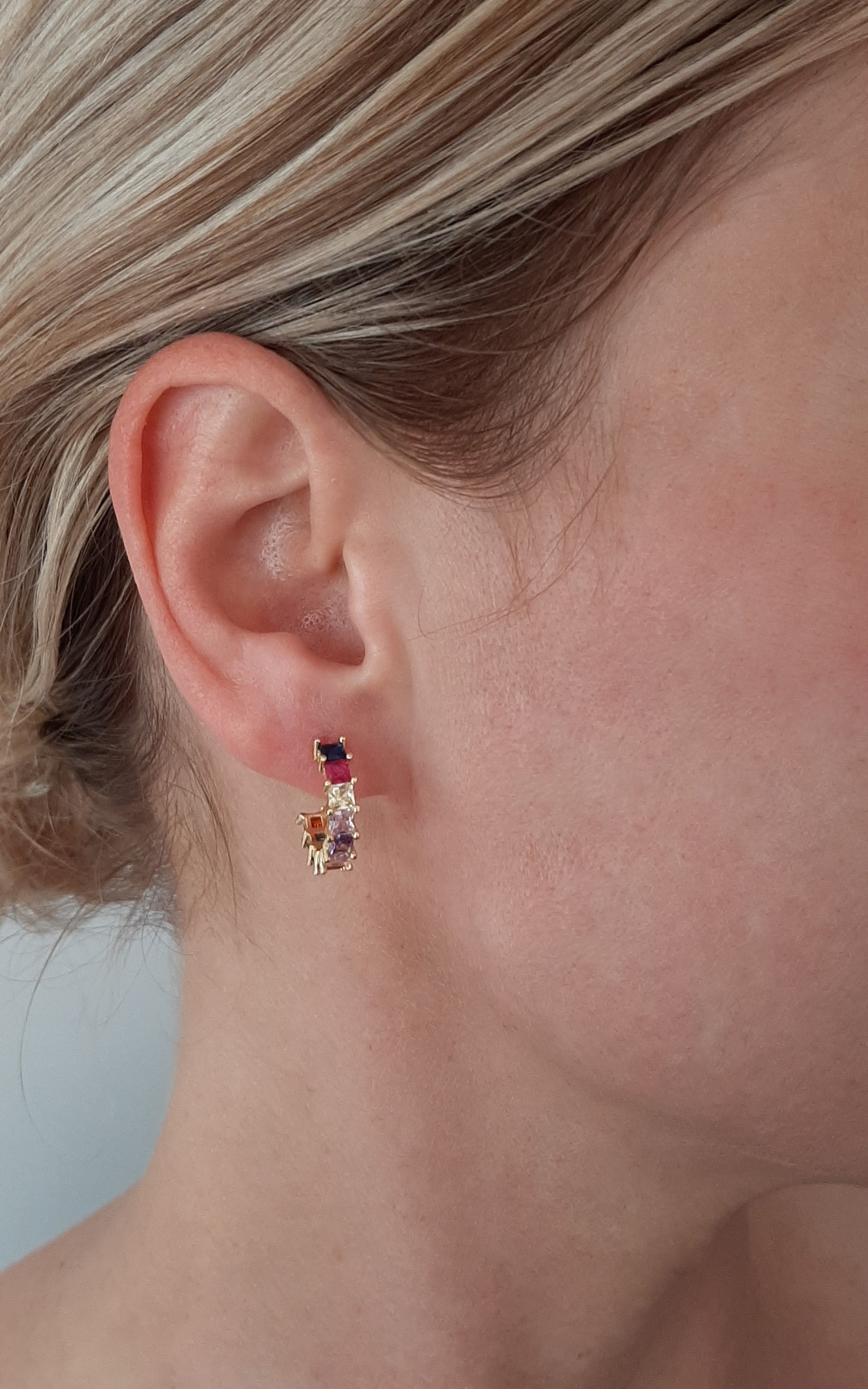 Alora - multi colour cubic zirconia half hoop gold-tone earrings