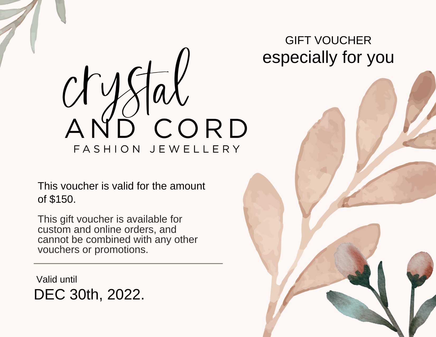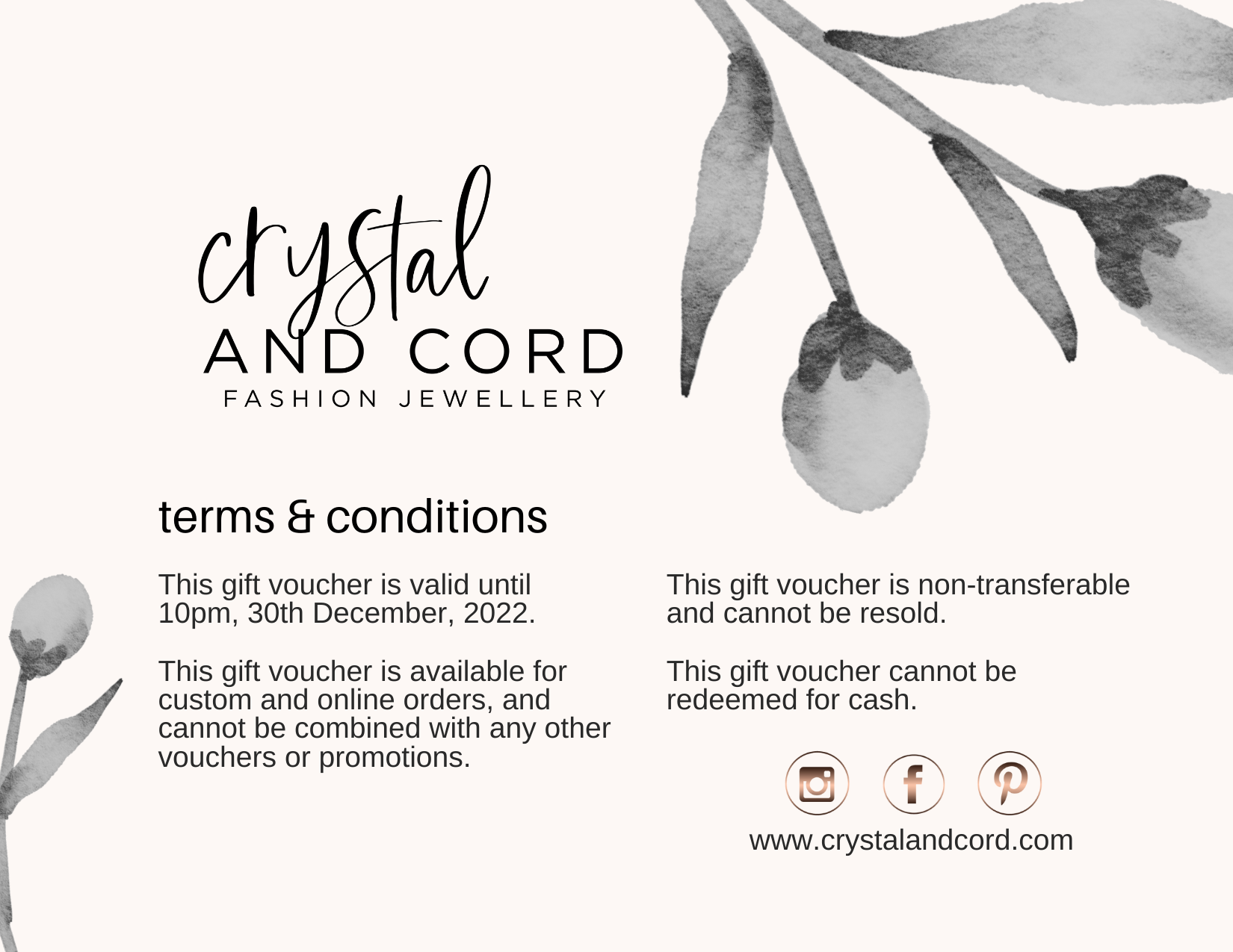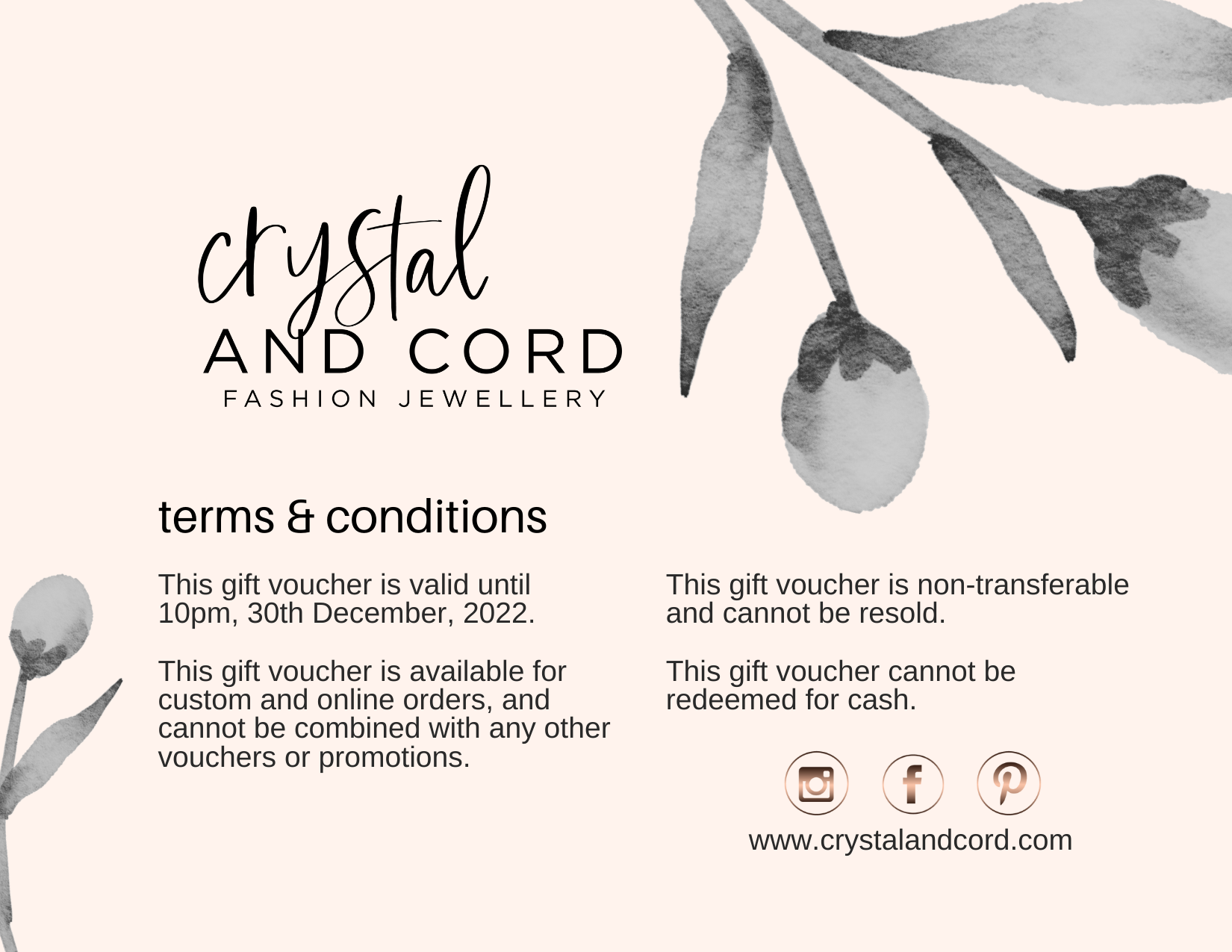 PS - I can also email your Gift Voucher. Just let me know if this is your preferred option, lynda@crystalandcord.com