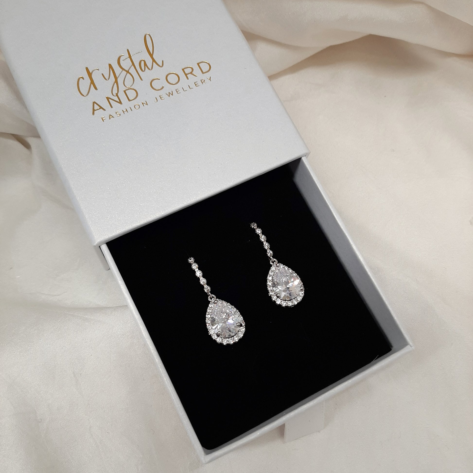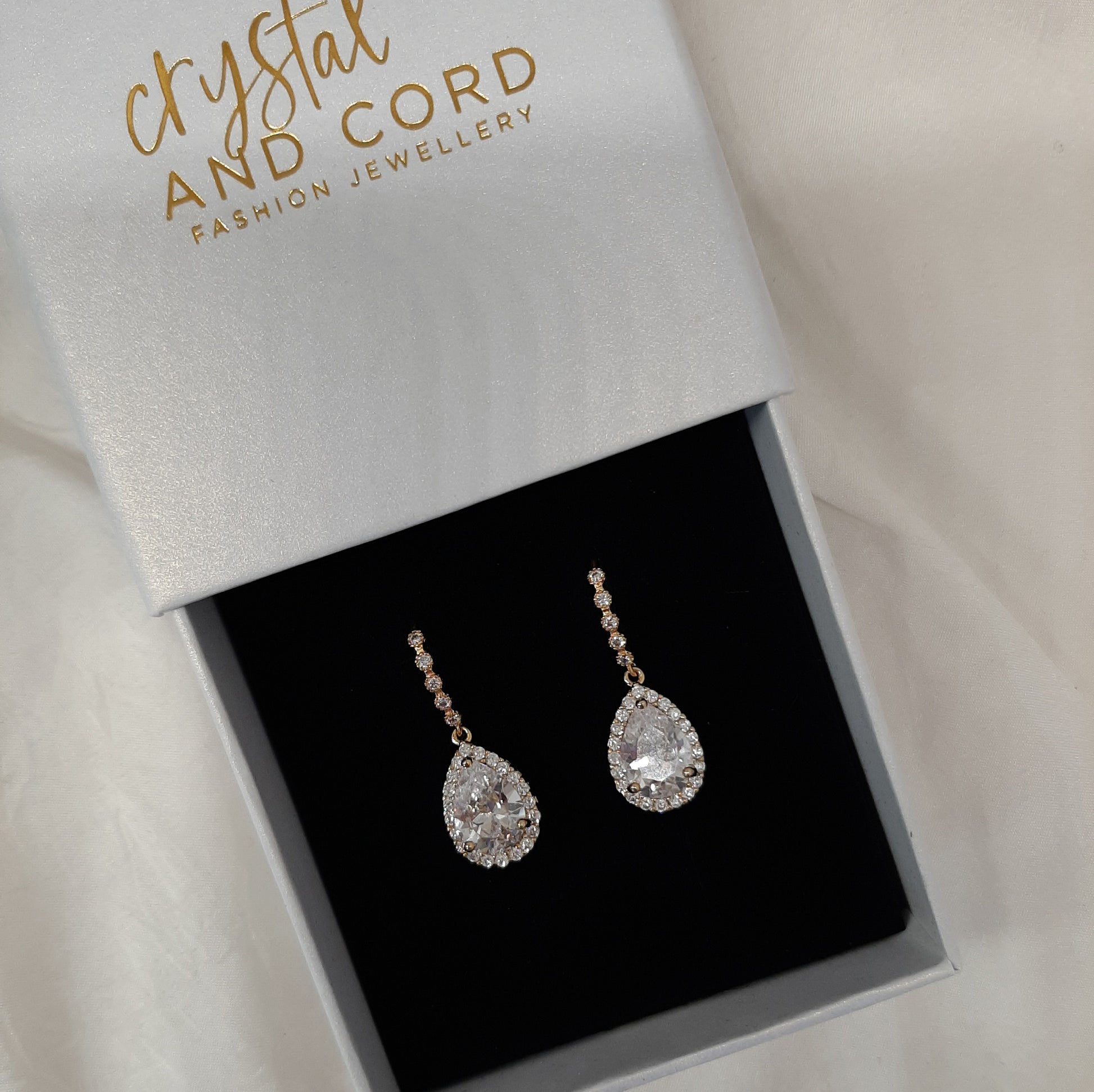 Kirsty - Cubic Zirconia crystal clear silver or gold tone drop earrings