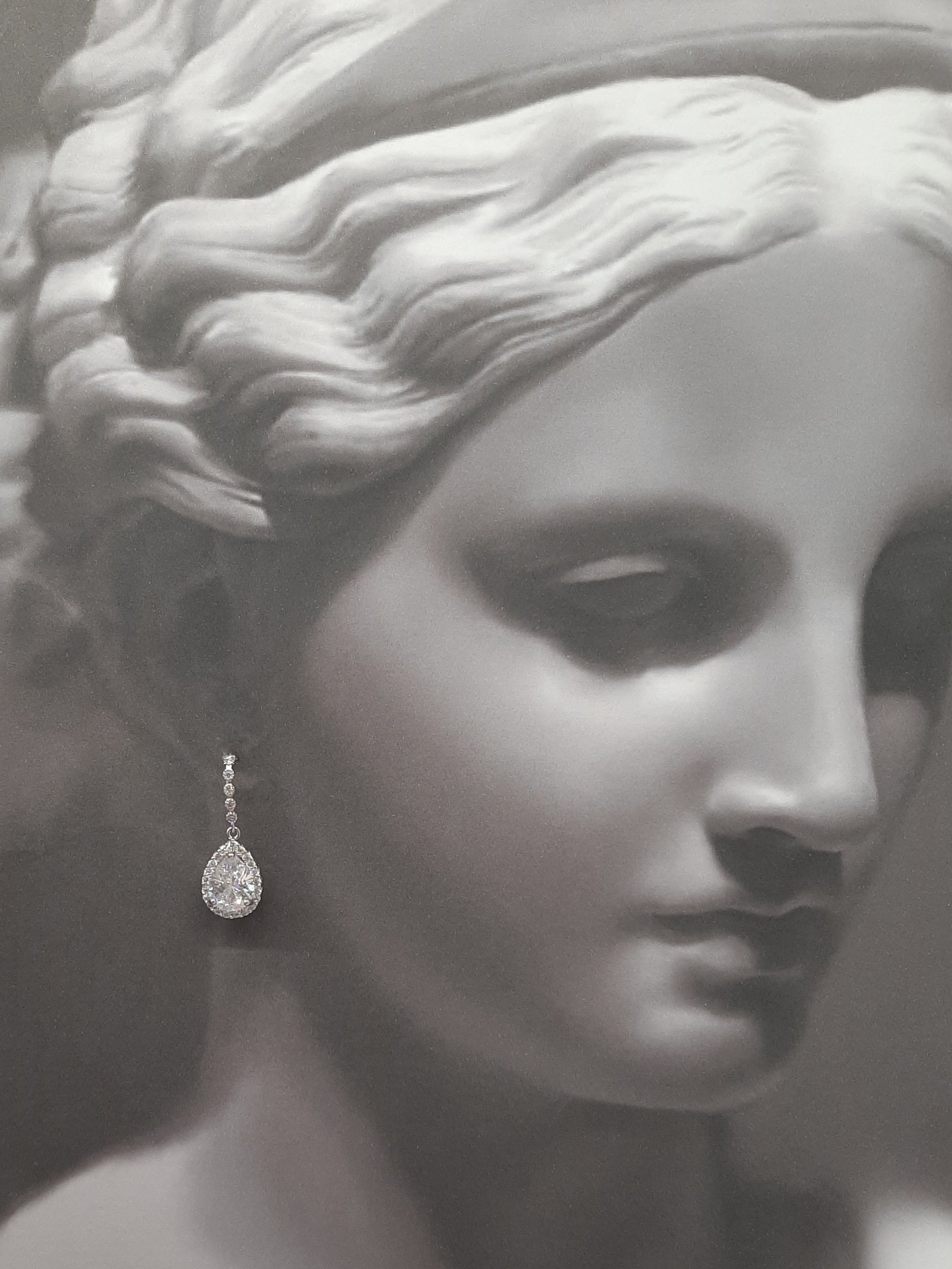 A very beautiful pair of cubic zirconia crystal clear drop earrings that sparkle like diamonds. The drops and earwires have been intricately made and the detail is magnificent.