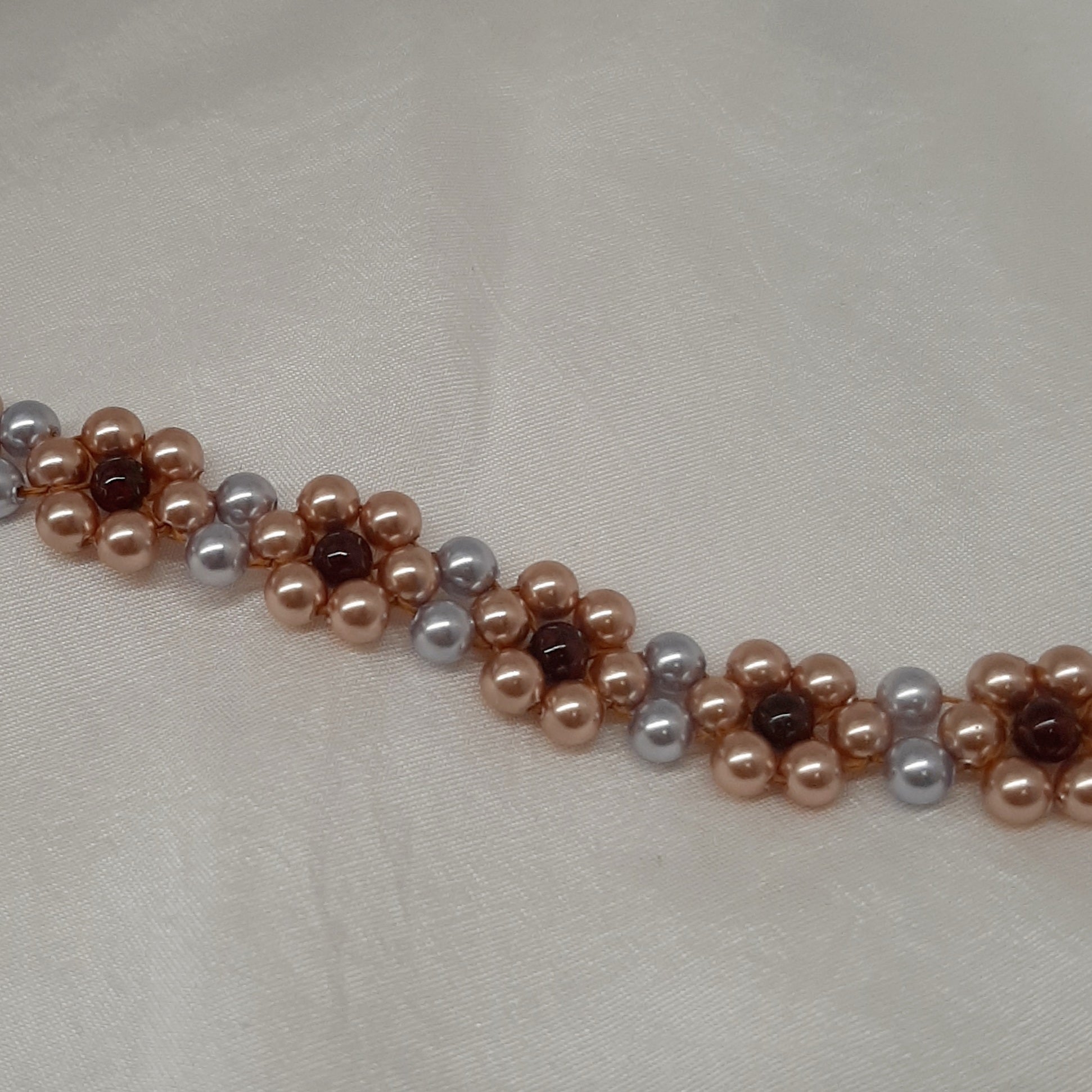 Crystal Passions'® rose gold pearls in the shape of a daisy, have a lovely shade of gold with a slight copper tint. They look magniciant with a garnet gemstone at their center and a couple of delicate lavender pearls placed between them. The warm colour tones of this bracelet and necklace are an elegant choice for both contemporary and vintage-influenced fashion.