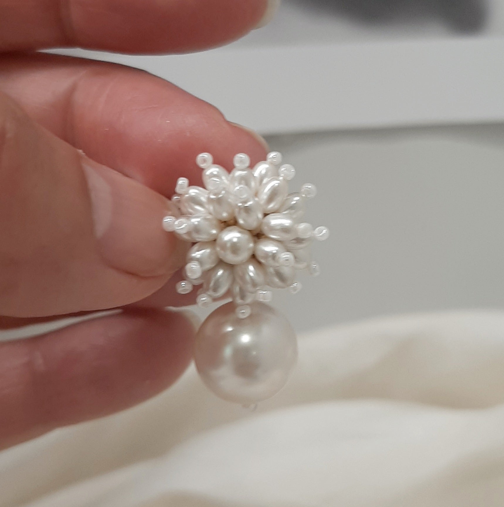 Dimensions : 4mm x 2mm rice beads, 12mm pearl bead, tiny glass seed beads