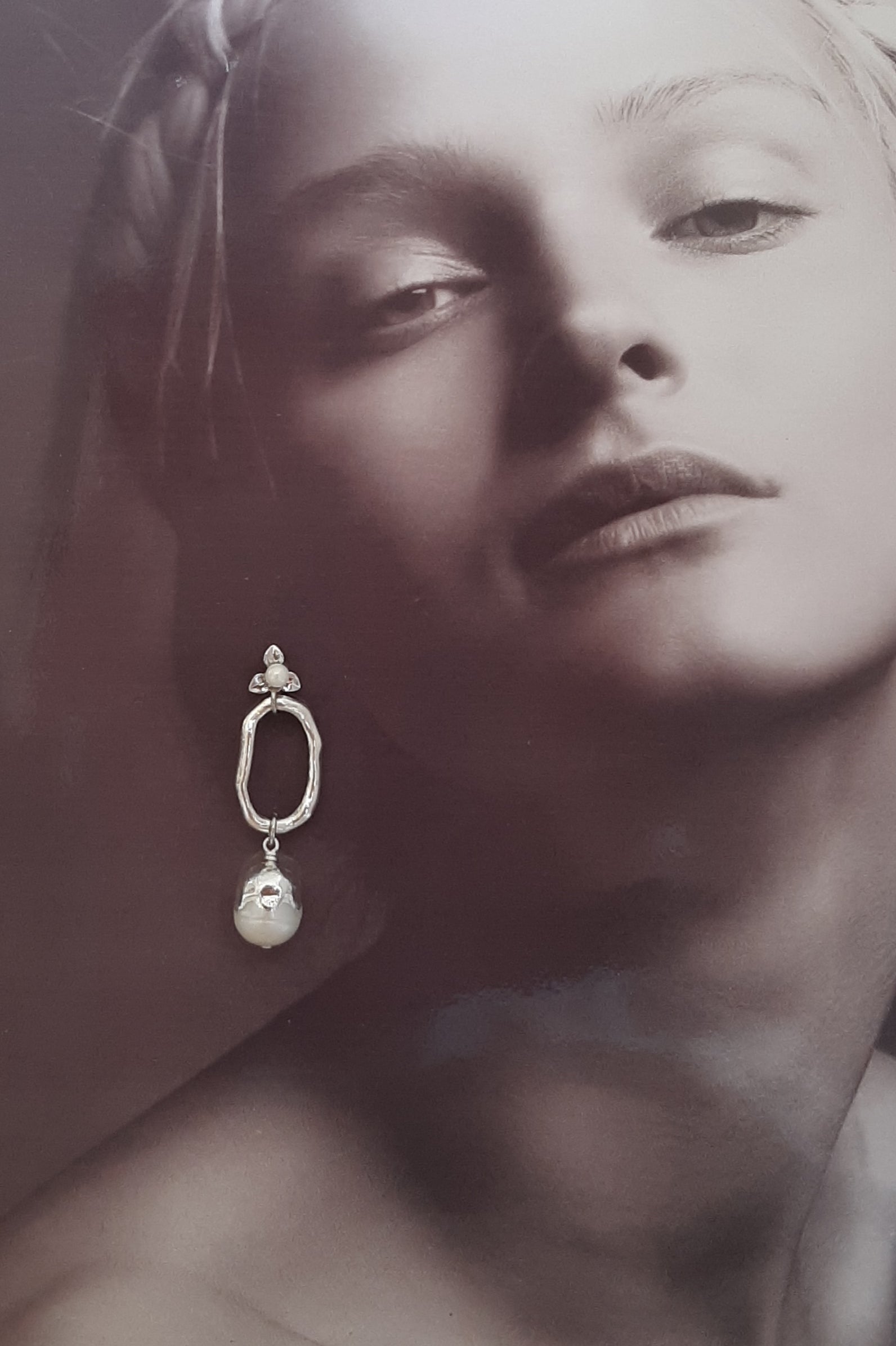 Flower stud drop earrings with silver hoops and silver dipped freshwater pearls drop