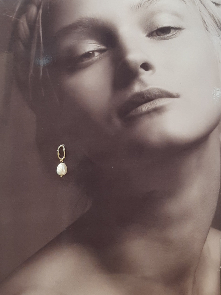 Julia - freshwater pearls drop and gold-tone oval hoop earrings SML