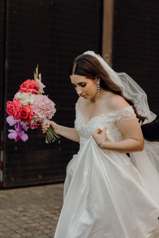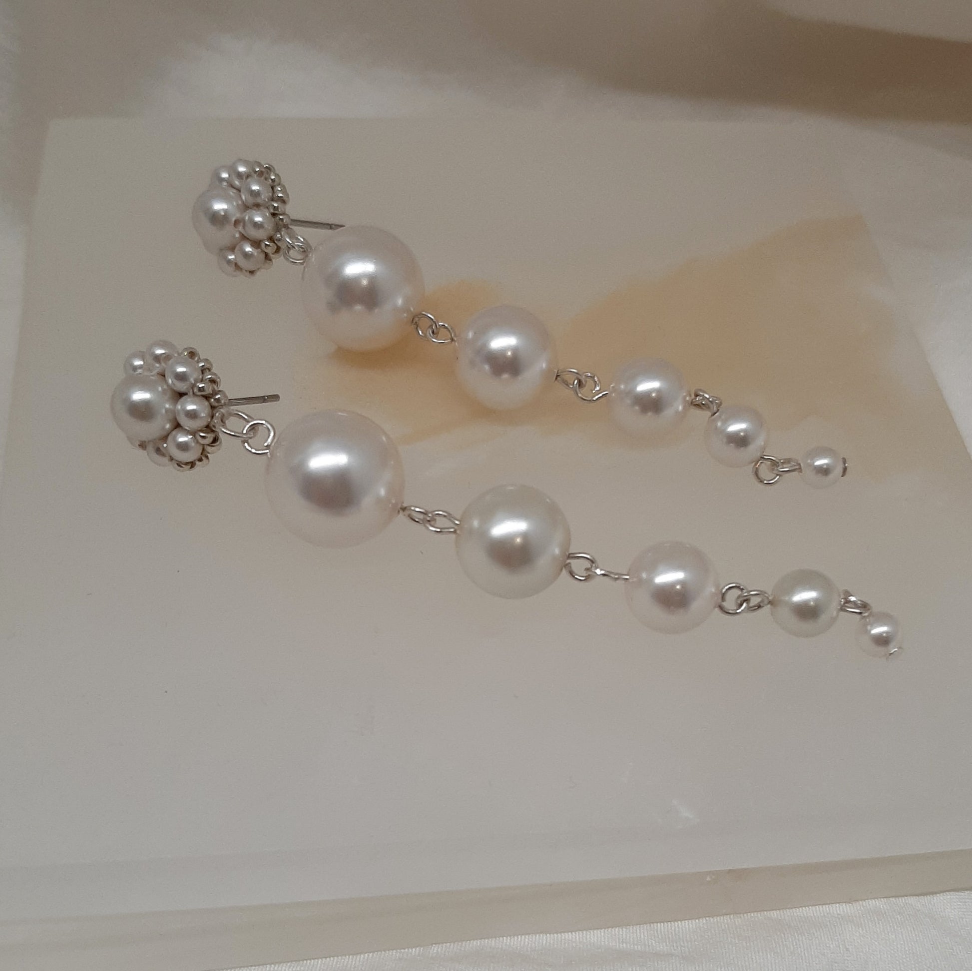 Grace (v2) - pearls tapered cascading flower shaped stud earrings