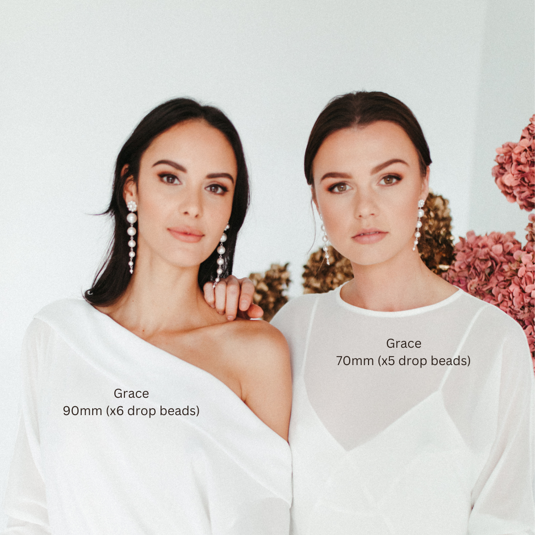 Finished Length : approximately 90mm (x6 drop beads), or 75mm Annelise (x5 drops, freshwater pearls) or 70mm (x5 drop beads) or 60mm (x4 drop beads) from the center of the ear post