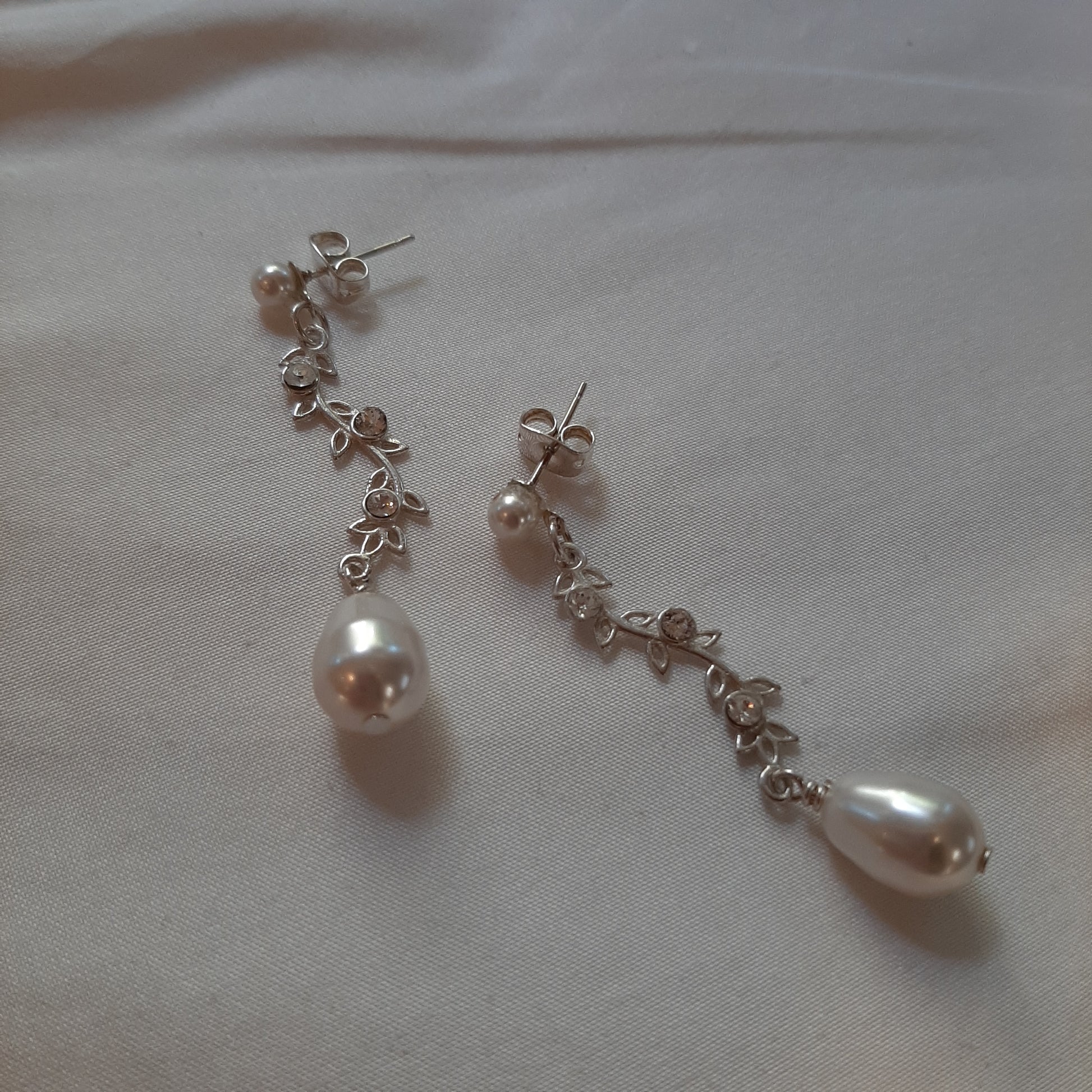 Isabelle - pear shaped pearl and sterling silver vine drop earrings and bracelet