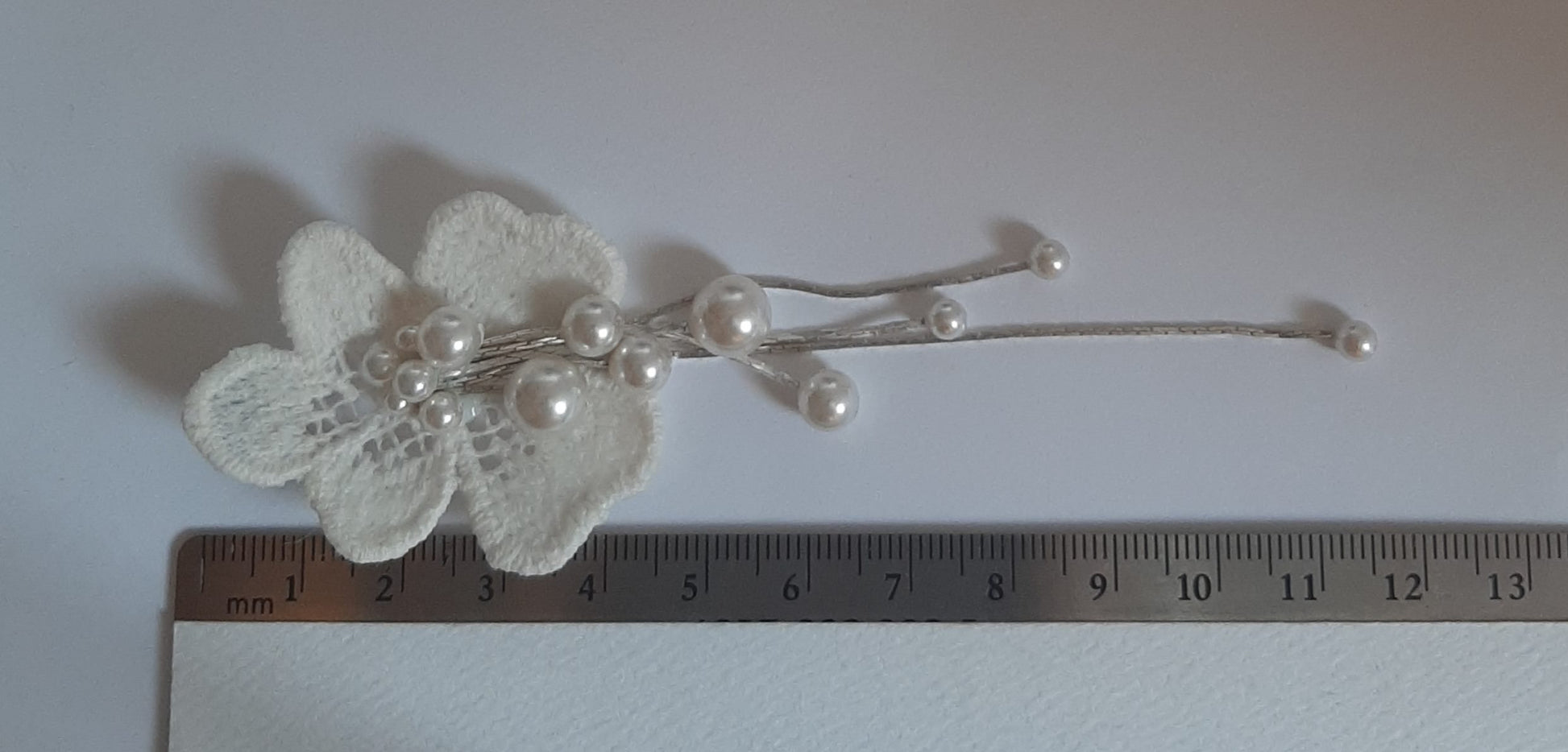 Dimensions : 8mm, 6mm, 4mm and 3mm beads, 46mm x 36mm lace flower