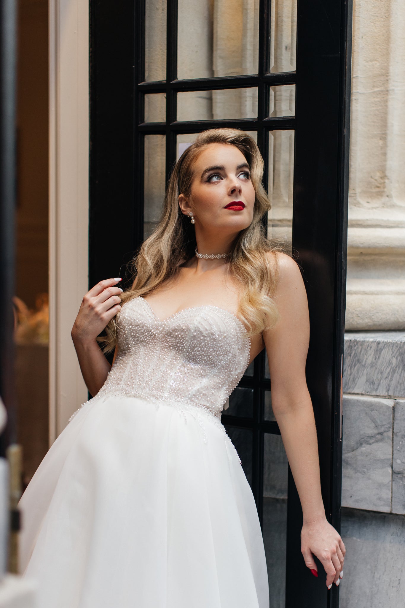 The accompanying ribbon adds an extra touch of allure, allowing you to tie it into a graceful, flowing bow or pull it up for a more understated knot. Tie it in the front or at the back. Whichever way you choose to style it, this string of pearl flowers empowers you to curate a uniquely enchanting look for your special day.