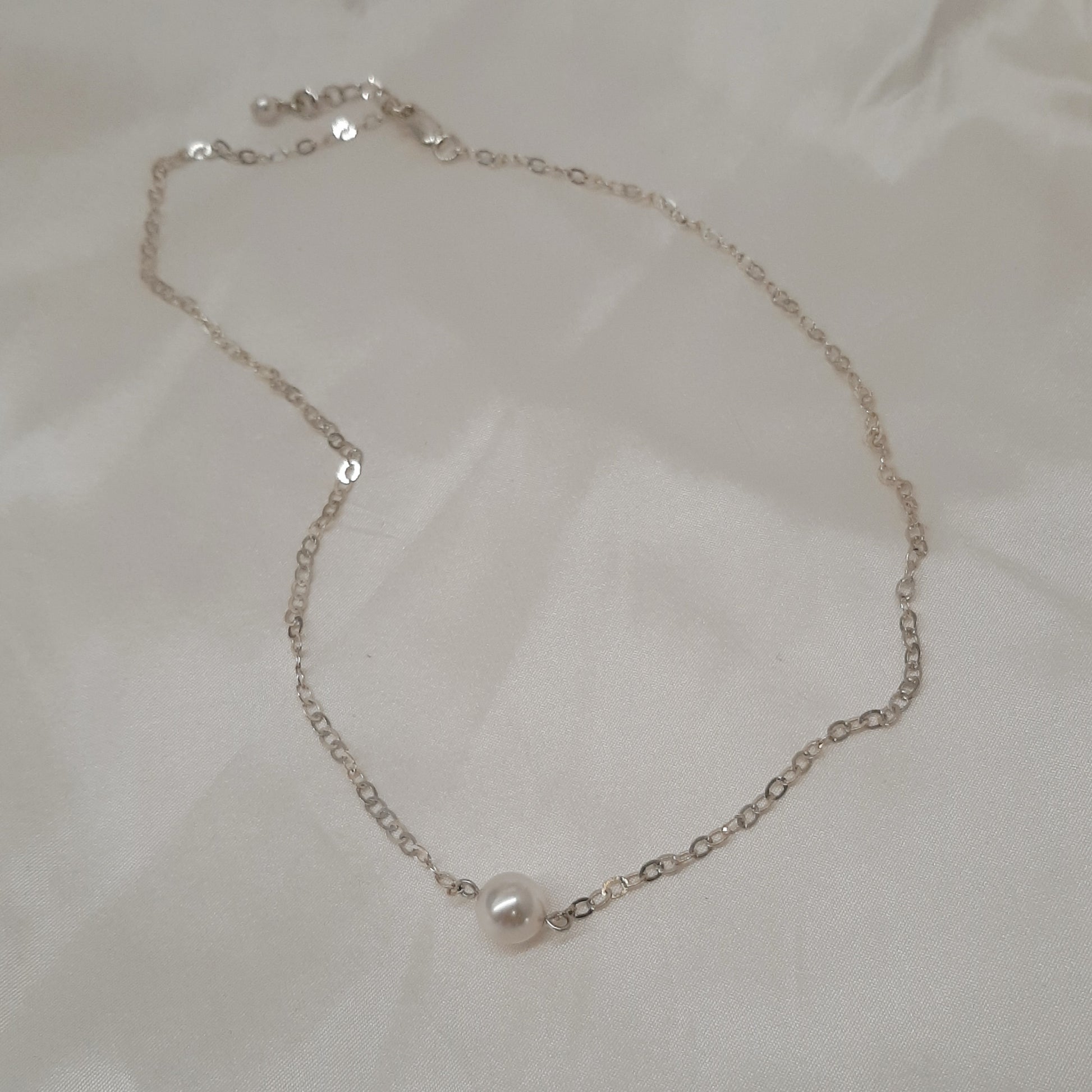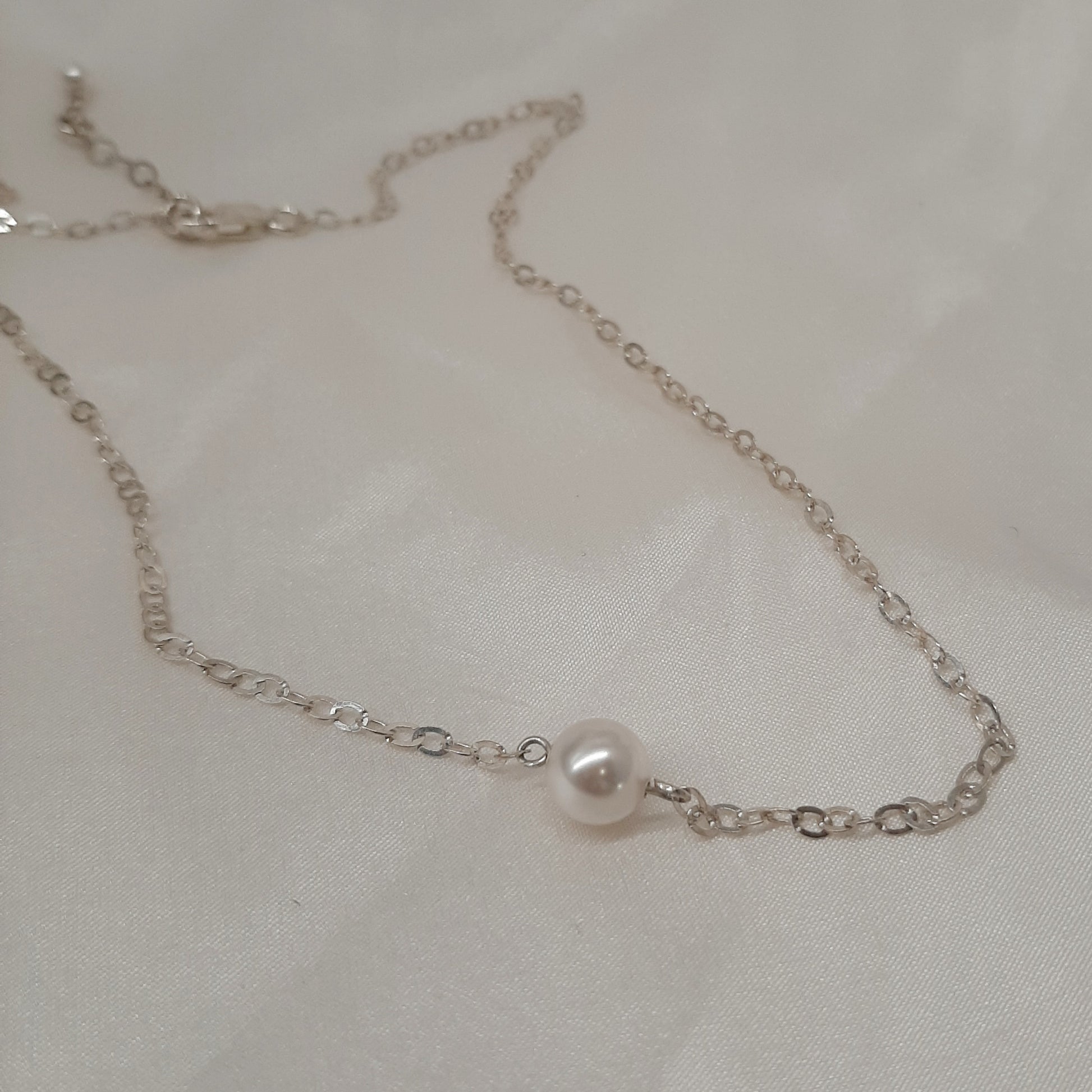 Mattie - silver-tone tiny chain and Swarovski crystal pearl pendant drop necklace