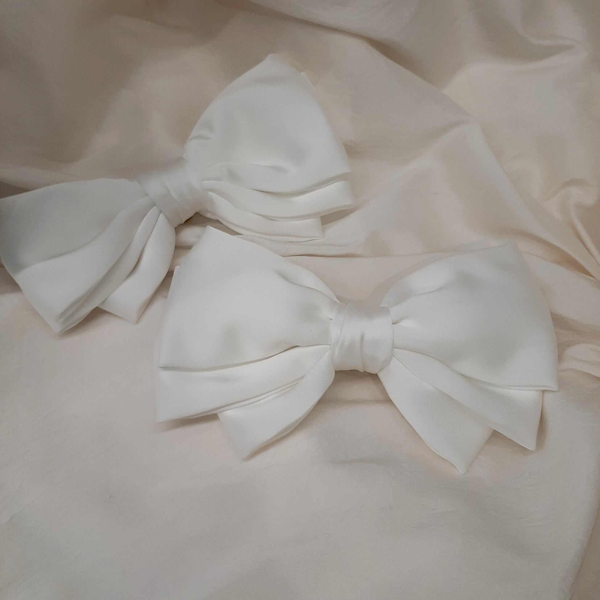 Introducing our delightful bow shoe clips, crafted from luxurious bridal satin for a touch of elegance. The exquisite sheen of the fabric adds a beautiful satin glow, enhancing the beauty of any shoe. Soft yet structurally firm, these clips effortlessly attach to the front, back, or any strap with ease. Embrace both style and comfort as these clips make a statement while ensuring a comfortable fit.