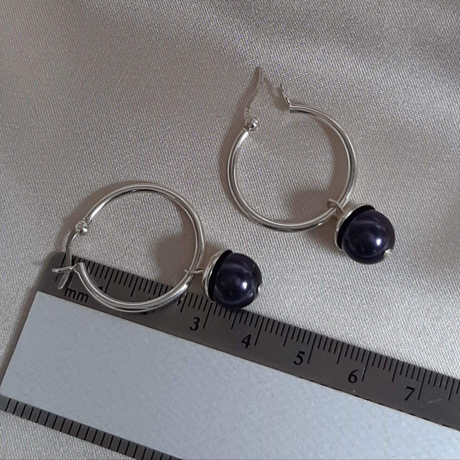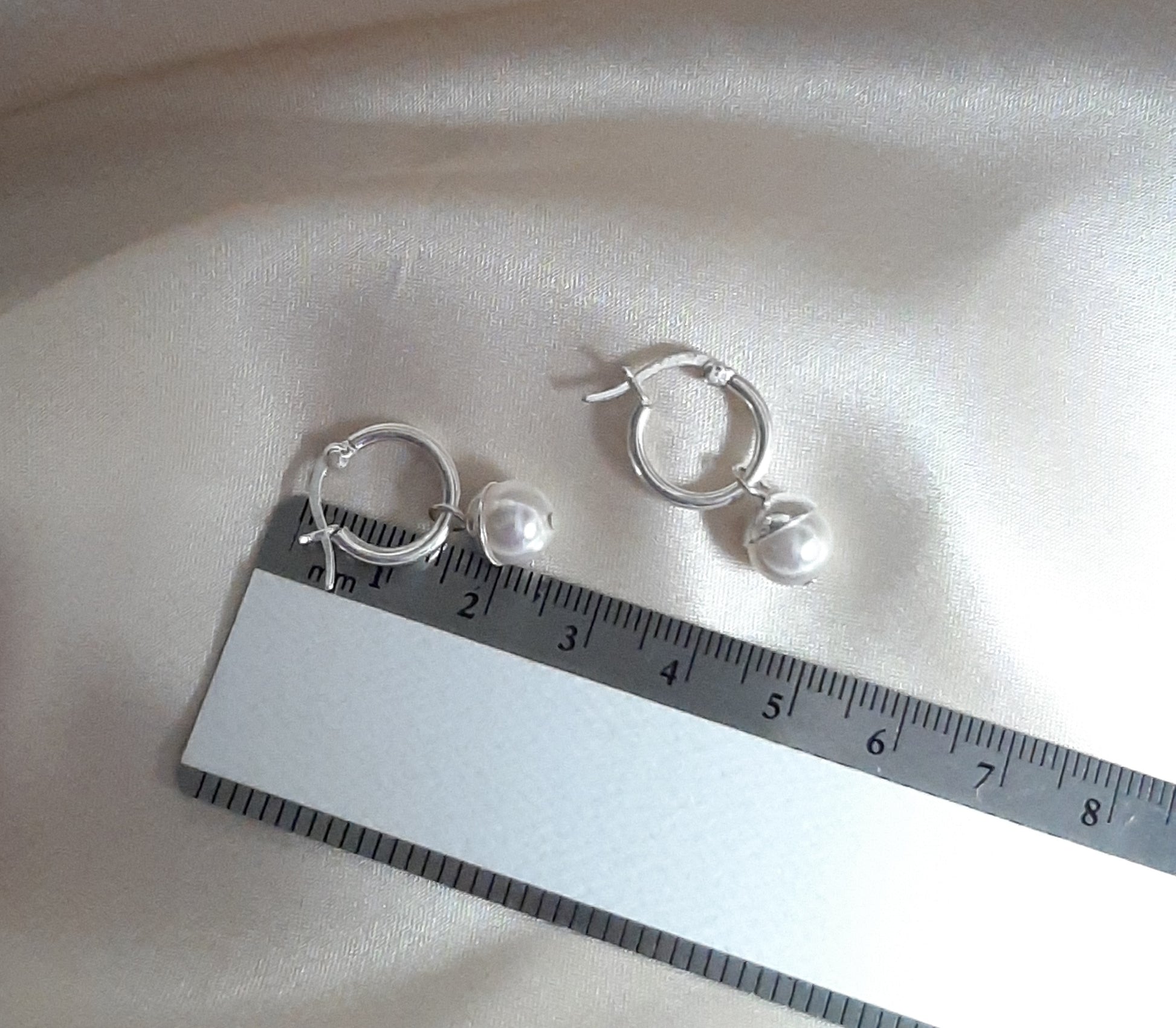 Smooth, lustrous and flawless like a classic pearl, these crystal base pearls feature a magnificent sheen, and when dangled from these sterling silver hoop's they create a beautiful elegant design. The pearl can be removed allowing the hoops to be worn on their own.