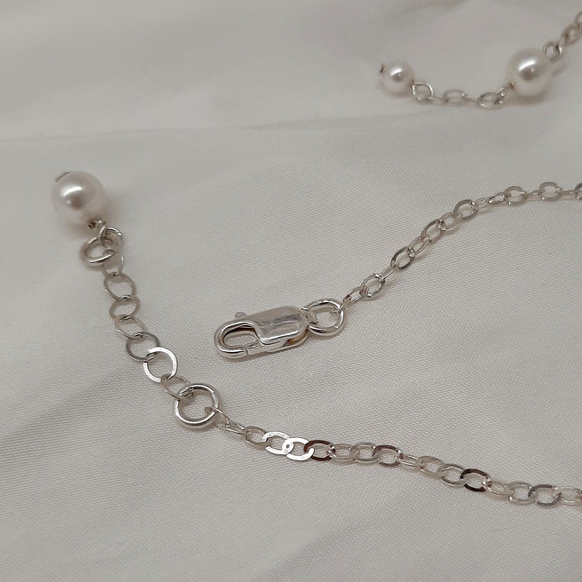 Lizzy - Swarovski crystal pearls and flat sterling silver chain long necklace